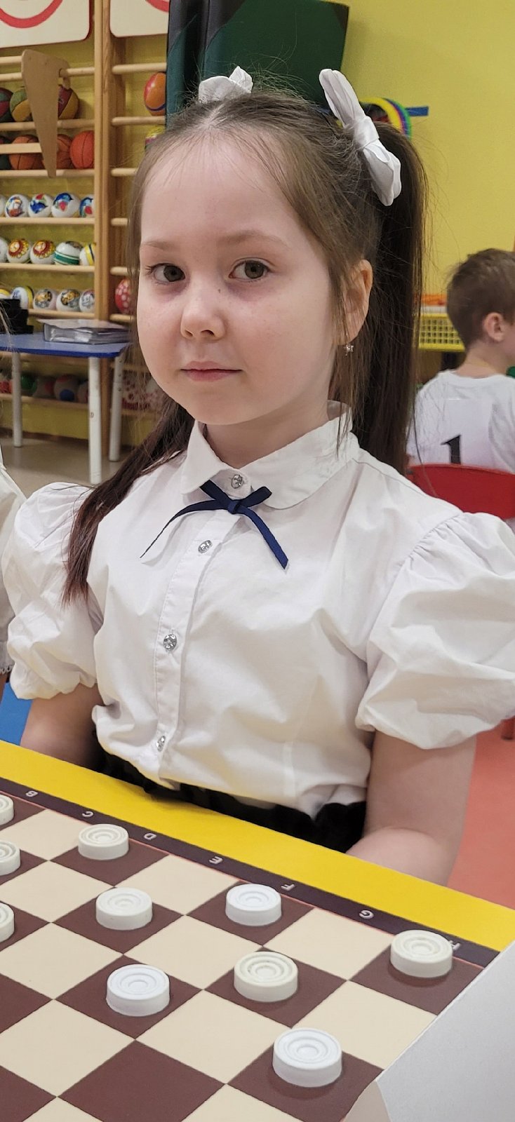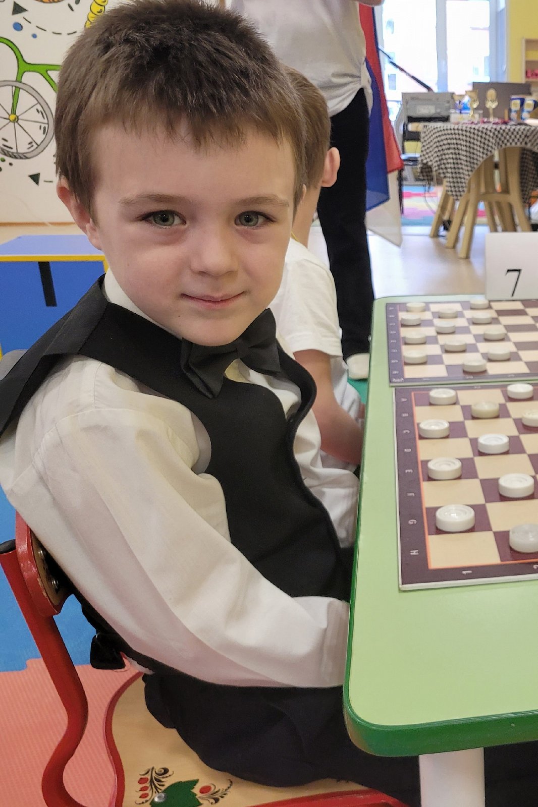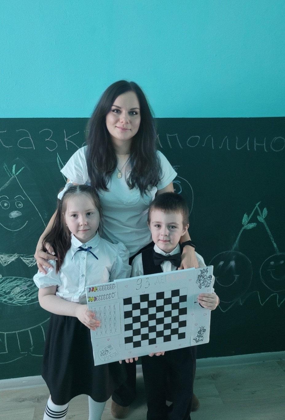 12 ноября наши воспитанники Гизматуллин Эмир и Мишина Юлия с инструктором по физической культуре Широковой Еленой Владимировной приняли участие в городском фестивале по шашкам "Чёрное-белое ",а в перерыве между партиями изготовили "поле" для игры и на память обменялись с ребятами из 109 детского сада