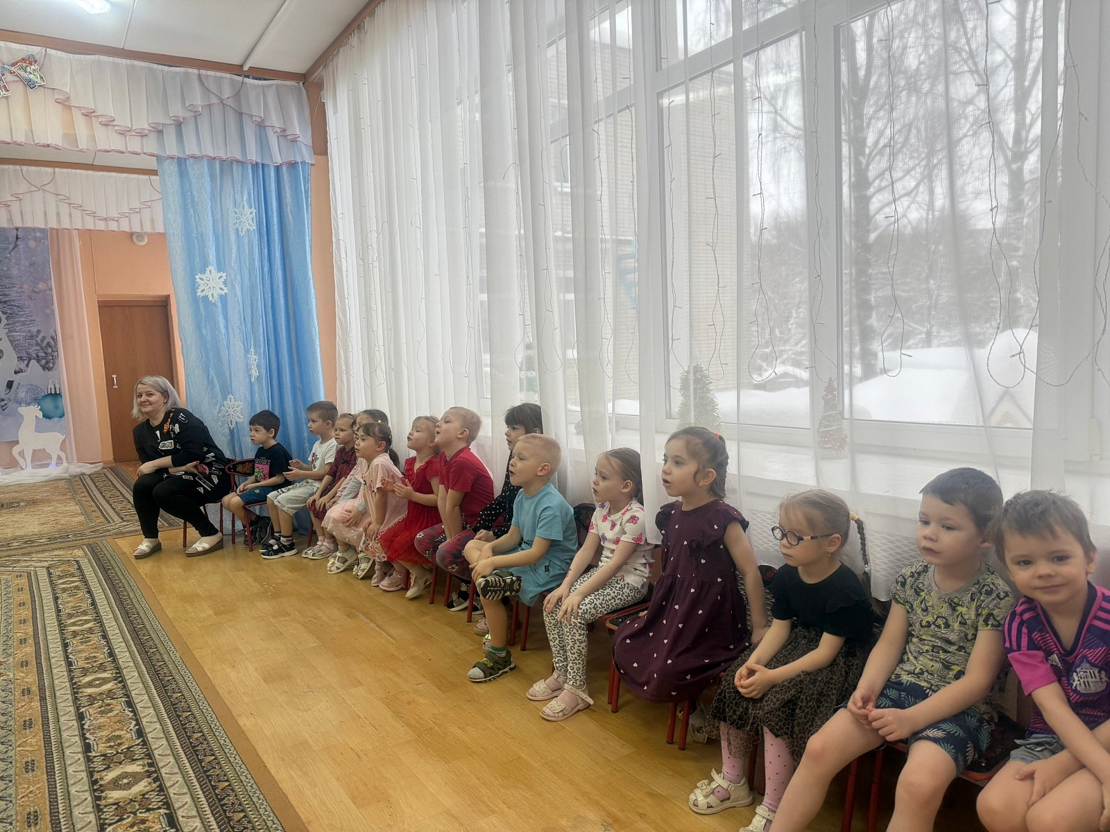 Вместе с воспитателями и музыкальным руководителем ребята пели песни и водили хороводы.